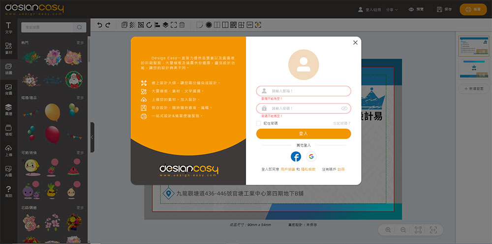 Step 6:保存或落單,需要預先註冊Design Easy賬號進行登陸或使用facebook、Google賬號快速登陸。如有賬號可跳過註冊步驟。