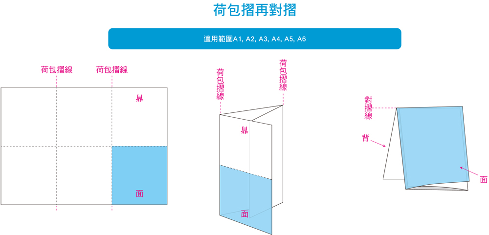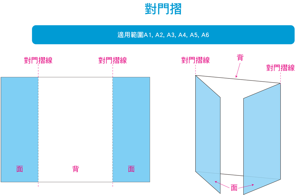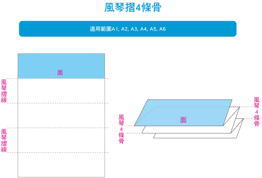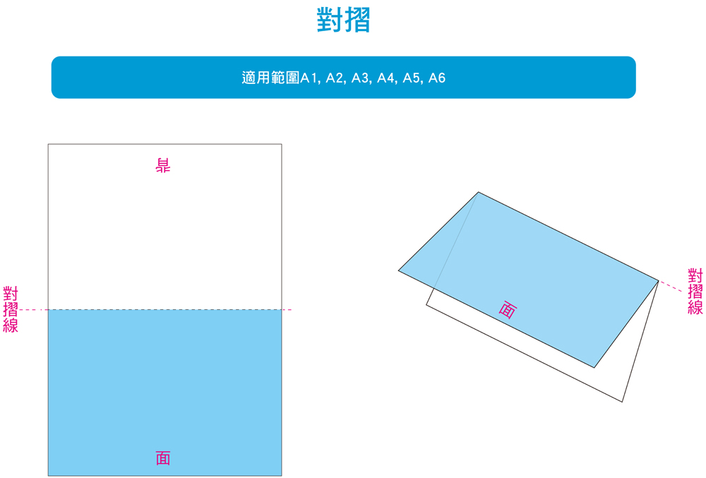 摺法 / 數量圖示適用範圍完成尺寸首1,000張以後每1,000張加收適用紙質