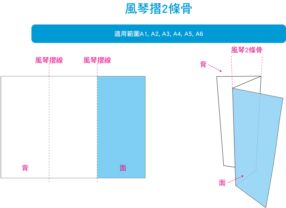 風琴摺2條骨對摺W99 x 420mm80g-157g