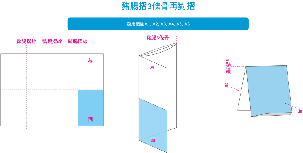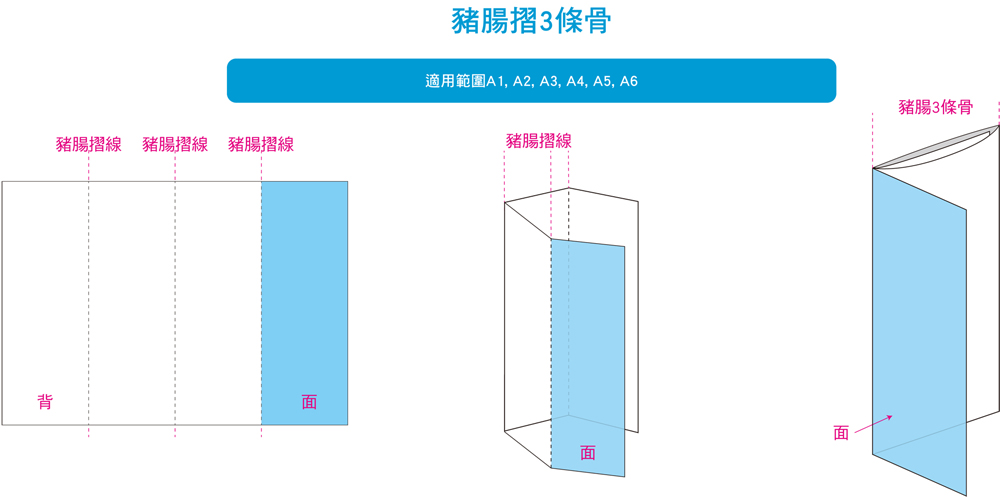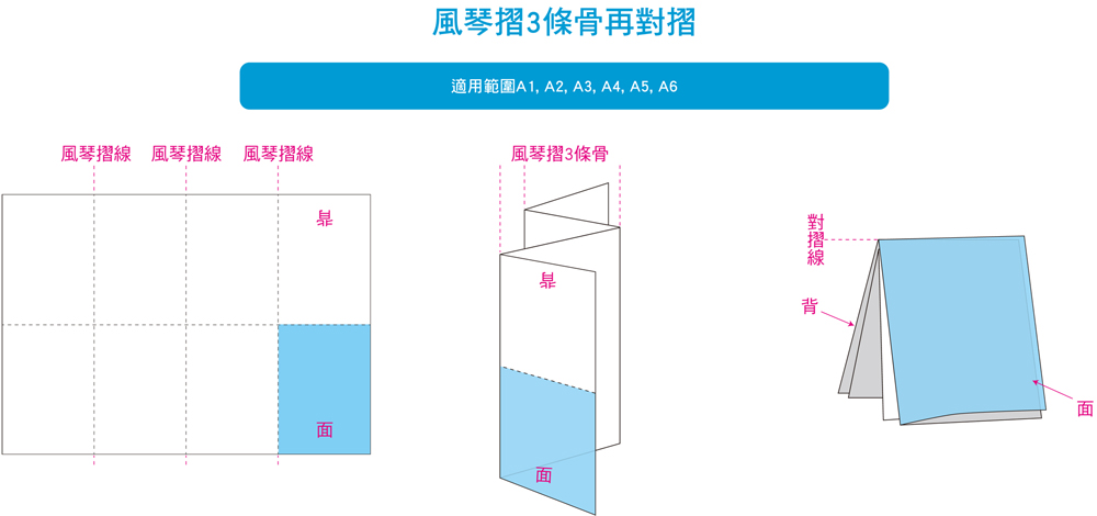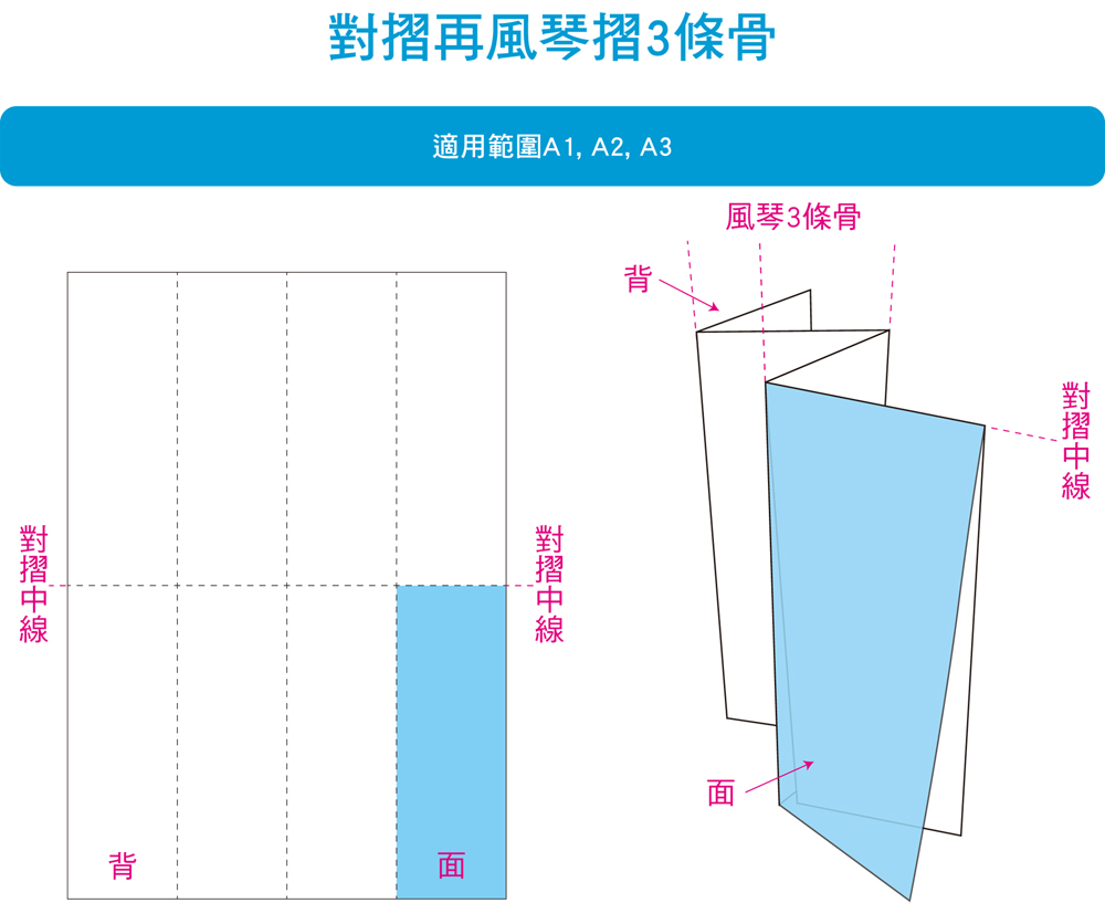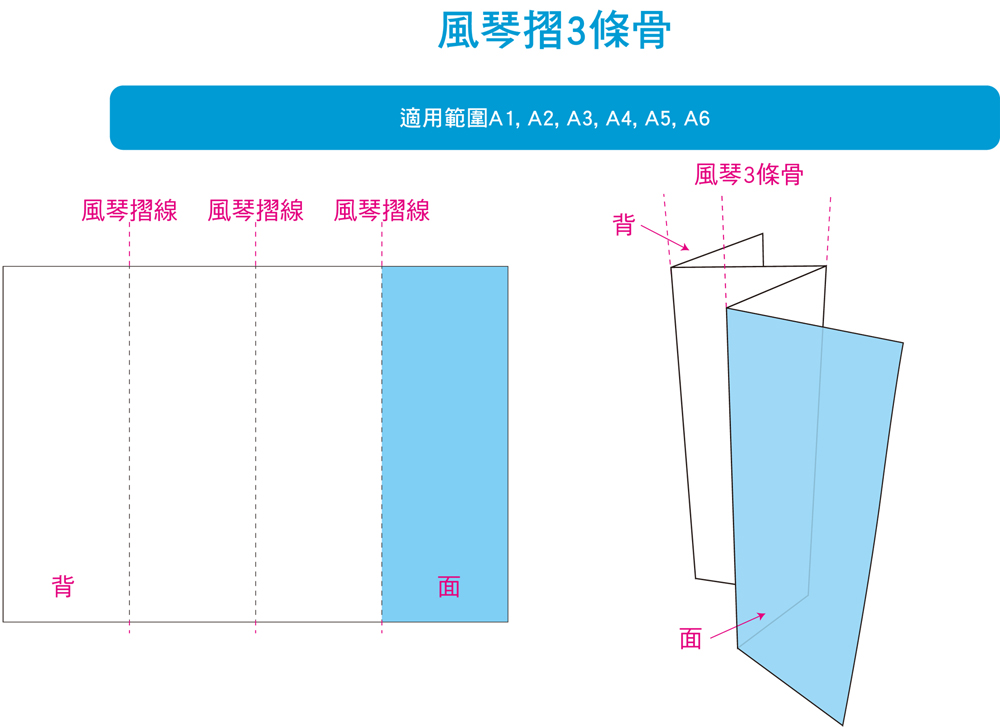 風琴摺3條骨對摺W74 x 420mm80g-157g